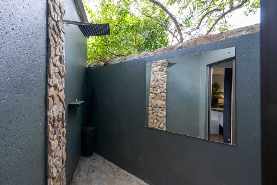 - Enclosed outdoor shower for a refreshing experience under the stars or sunshine, plus a fully equipped indoor shower and a closet.